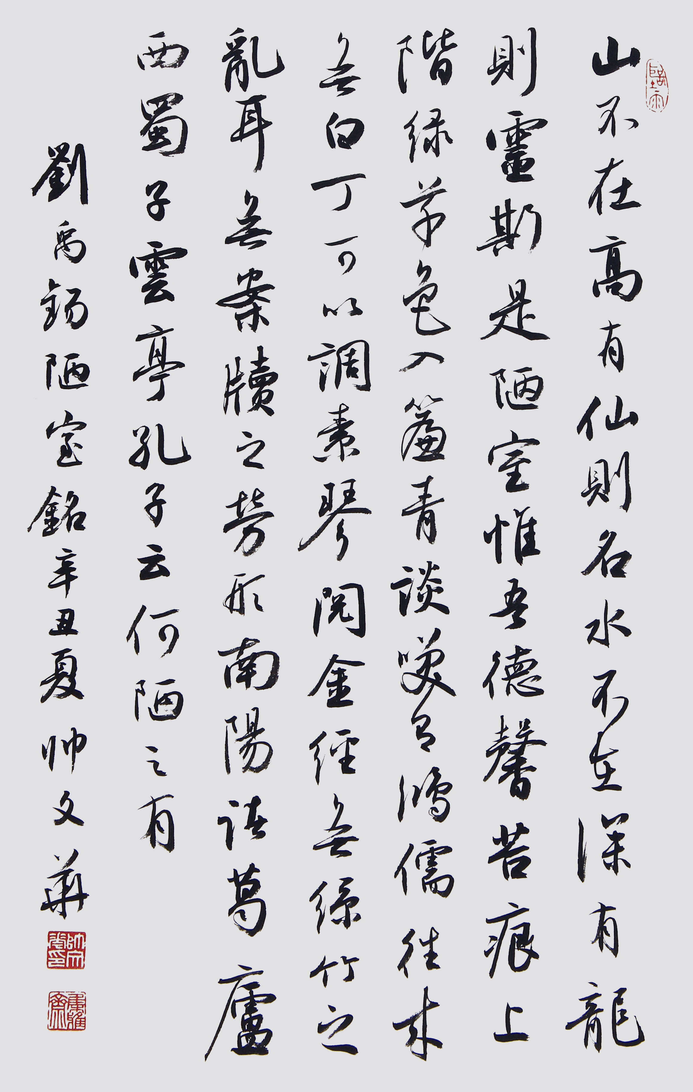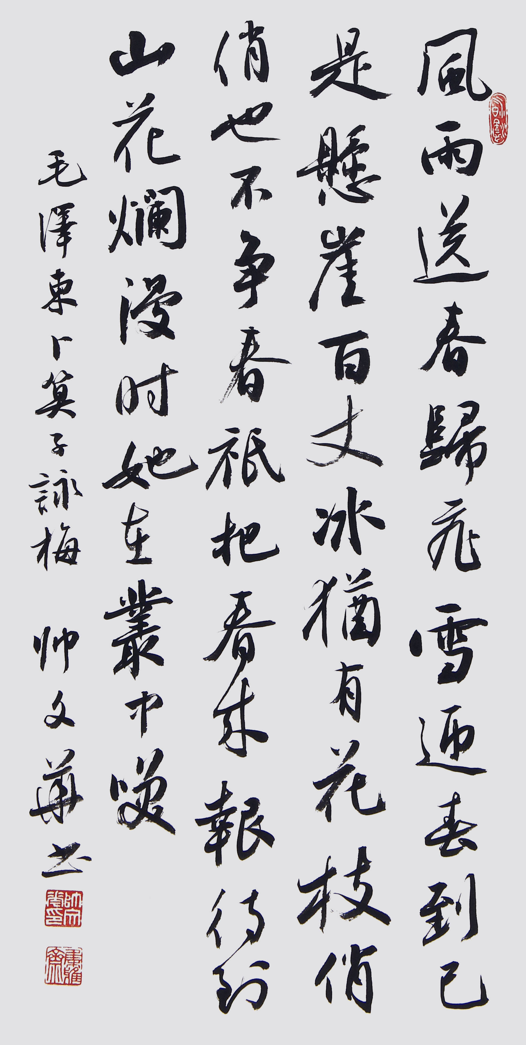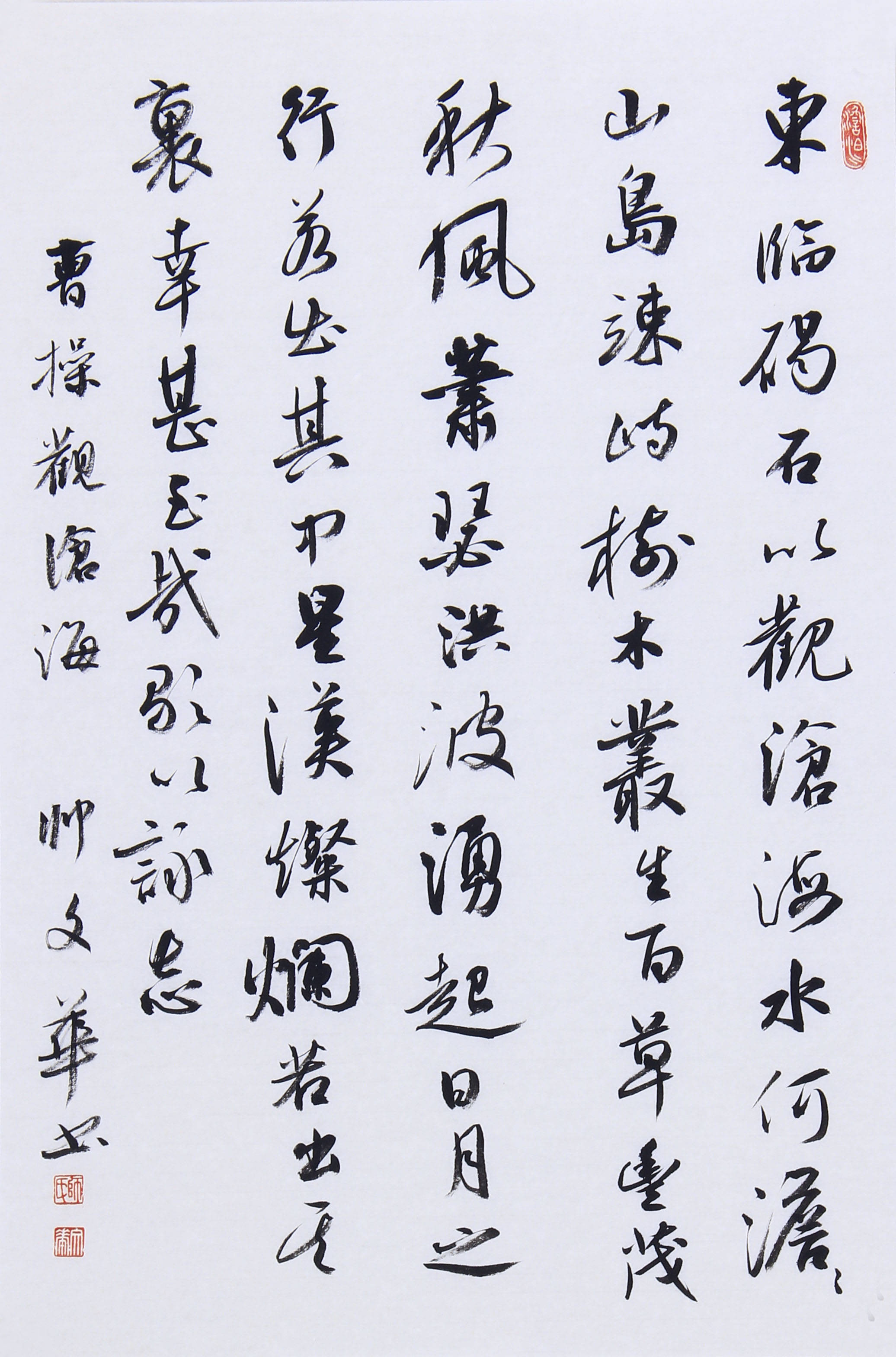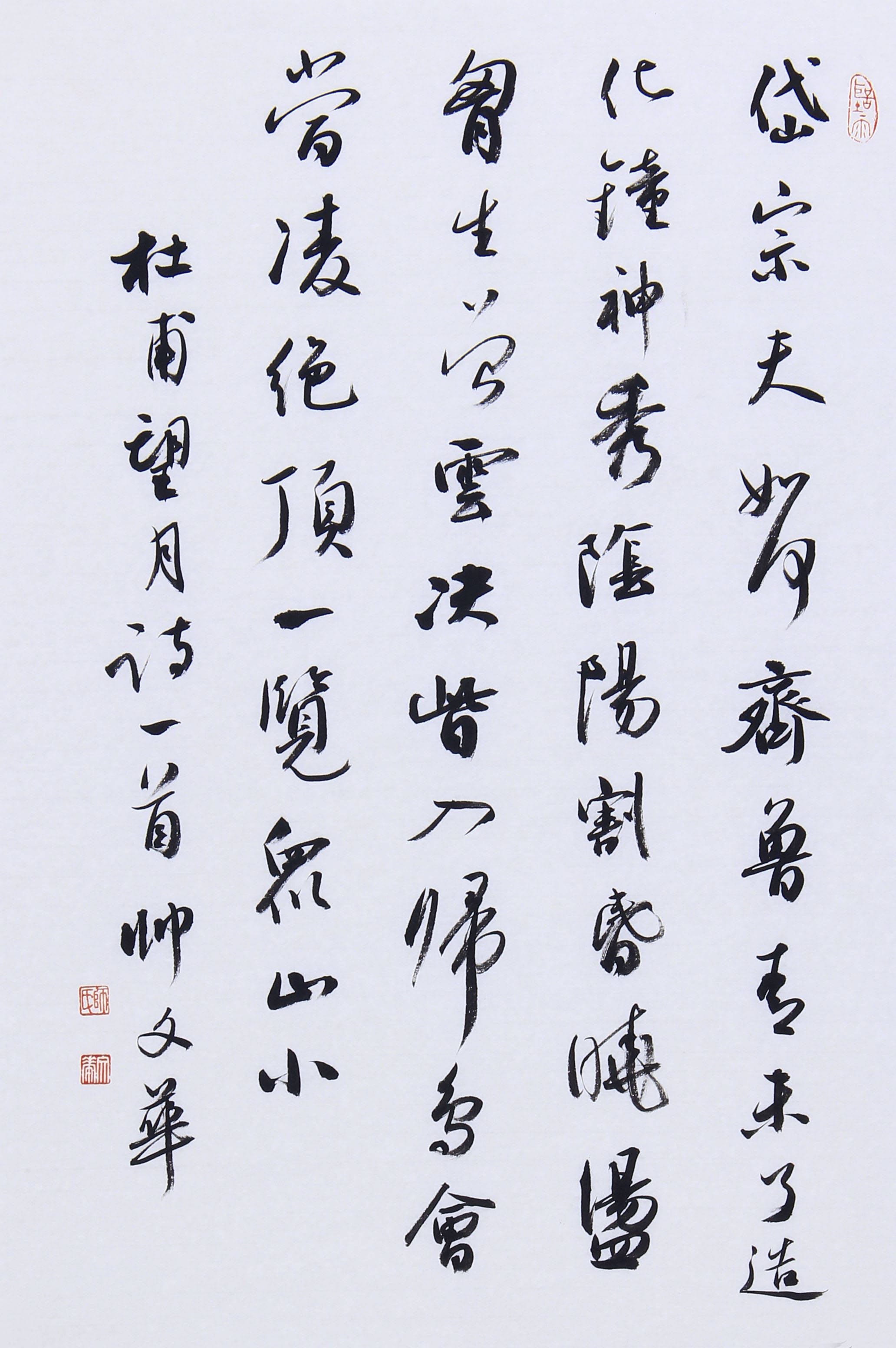 帅文华 、别号集雅斋主、祖籍江西。现为北京书法家协会会员,北京市东城书法家协会会员,自幼受祖辈影响酷爱书法,多年来临池不辍,少学颜柳,欧阳荀,壮学王義之形成了结构严谨。变古熔今逐成自家风貌,笔力遒劲苍古,笔法潇洒骏逸,气韵沉稳生动,深得书界好评。作品多次在京书法展中获奖,书法作品深受全国各地收藏家的喜爱以及全国各大文化市场画廊的青睐。