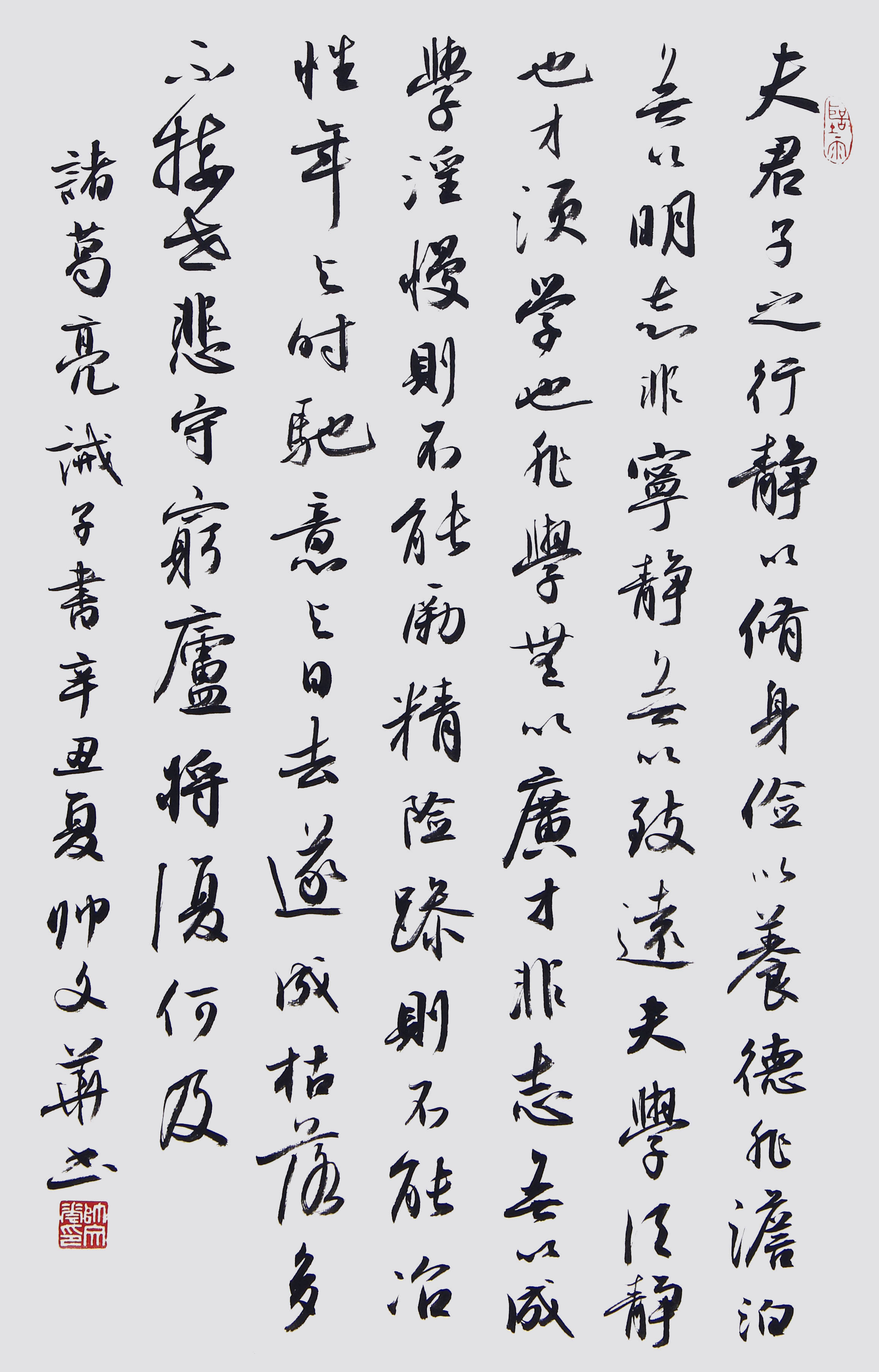 他的行书手迹端庄秀挺,字间尽显严谨气质。行笔潇洒利落,结体干净明快,既见清雅脱俗之姿,又含典雅大度之韵,清气盎然不做作,直白有个性,恰是 “字如其人”。作品承 “二王” 风骨,笔迹清晰流畅,墨痕高古雄健,深入浅出地彰显出运笔的精妙内涵。